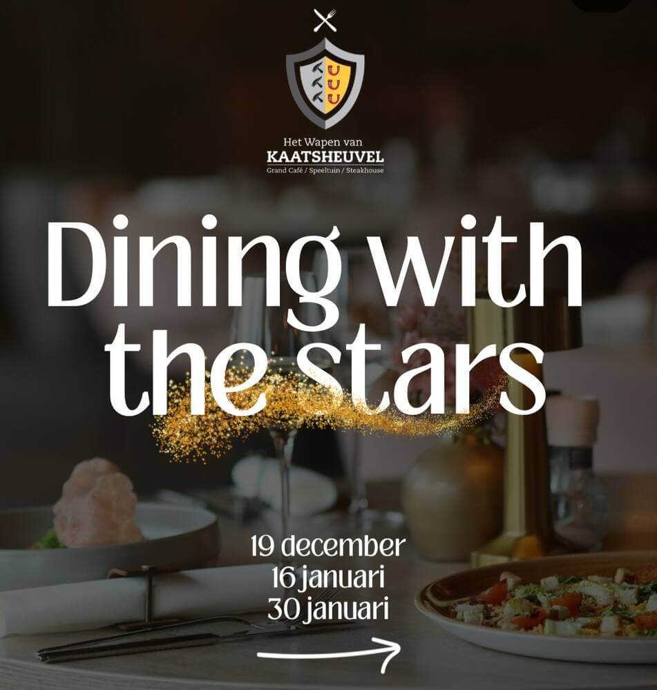 Beleef een avond waar culinair genieten en betoverend entertainment samenkomen. Tijdens deze onvergetelijke beleving wordt u ondergedompeld in een avondvullend programma vol spectaculaire acts, sprankelende verrassingen en een intieme sfeer, die u meeneemt naar een wereld vol sterren.